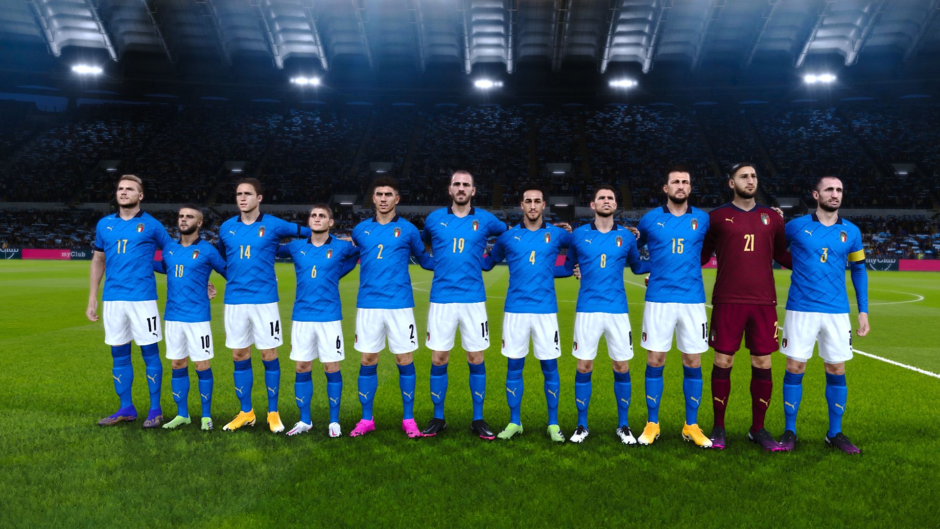 Aggiornamento importante anche lato divise, perché vengono aggiornate le divise di moltissime squadre in PES 2021. In particolare troviamo la nuova divisa della nazionale italiana, che sarà utilizzata in UEFA EURO 2020 la prossima estate. Sempre per le nazionali, aggiornati i kits anche di Brasile, Peru, e altre compagini che disputeranno i prossimi campionati europei di calcio. Ma soprattutto, aggiornate le divise della Serie A e della Serie B, con l’aggiunta di nuove terze divise e la sistemazione degli sponsor che mancavano. Nella Serie A in PES 2021 troverete quindi sistemate le divise di Atalanta, Benevento, Bologna, Cagliari, Crotone, Hellas Verona, Parma, Roma, Spezia, Torino e Udinese. Nella Serie B invece sono state aggiornate le divise di ben 19 squadre, tra cui quelle di Chievo, Empoli, Reggina, Reggiana, Frosinone, Lecce, Salernitana e Pordenone.